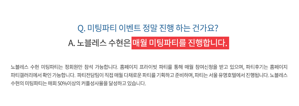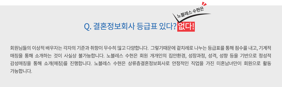 그런 점에서 노블레스 수현이 눈에 들어왔어요. 노블레스라는 컨셉에 걸맞게 조건이 상당히 좋은 분들이 많이 가입하는 곳이라는 걸 알고 있었거든요.